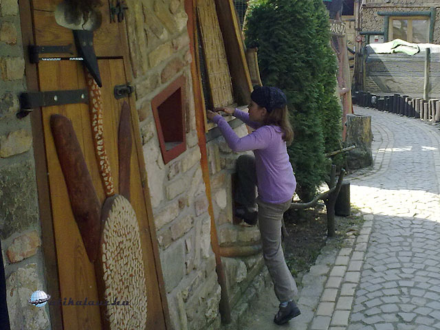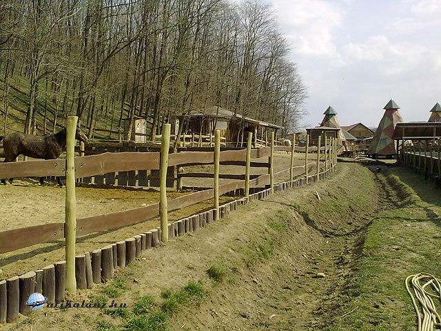 A büfé felé haladva láttunk jó pár lovat, szerszámokat, a hegyoldalban birkákat, kecskéket, szamarakat, amelyek csak úgy – persze távoli kerítéssel körülvéve – magukban legelésztek, ugrándoztak. Nem győztünk betelni a látvánnyal és az élménnyel. Az összes építmény természetes anyagokból készült, és látszik, hogy minden új, még semmit nem kezdett ki az idő vas foga. A park területét gyönyörűen karban tartották, munkagépeket, szerszámokat is láttunk, tehát nagy lehet ott a sürgés-forgás hétköznapokon, amikor kevesebb a látogató.