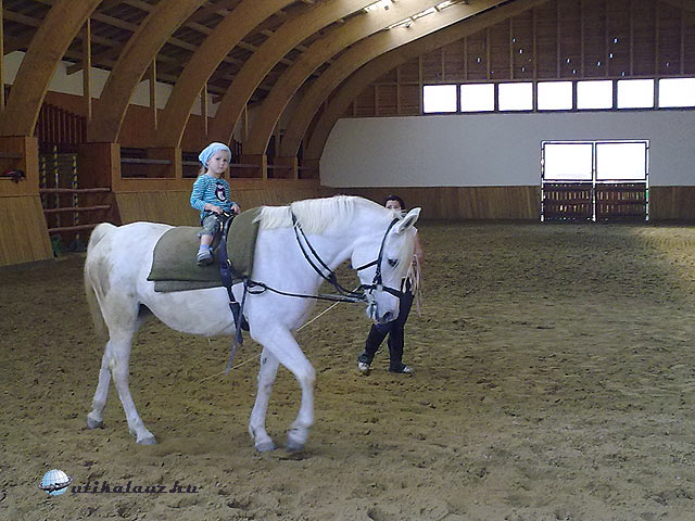 A kézműveskedés után a lovaglás következett. A leírásban a lovaglás kipróbálását ígérték, amelyben kellemesen csalódtam, mert ez nem csak 1-2 kört jelentett, hanem hosszabb ideig, többféle járási módban próbálhatták ki a lovat a gyermekek. A lovaglásra felnőtt is vehetett jegyet. Volt ott nem egy vállalkozó szellemű anyuka, aki várta a sorát; habár azt megnéztem volna, hogyan tudnak felpattanni kengyel nélkül a magas lóra. A pacit a szőrén, azaz egy pokrócon ülték meg az aprónépek, a lovas mindeközben futószáron vezette és instruálta lovát. A lófuttatás után megcsodálhattuk a többi kancát és csődört, ahol éppen itatási idő volt.