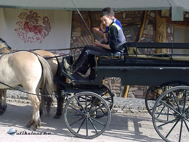 Végre a büfé felé vettük az irányt, hát nem ott várt minket egy csodaszép lovas kocsi? Rögtön birtokba is vettük, gondoltuk a kávé megvár minket. A kocsi hátulján ülve, több mint fél óráig csodálhattuk a nőtincsi horgásztavat és környékét, majd a települést. Jó érzés volt bemenni a kis utcákba, megnézni kívülről a kastélyt, hallgatni, ahogy a kocsis minden szembejövőnek név szerint köszön, mert hát ők mind ismerik egymást. A település nagyon belopta magát a szívünkbe, eljátszottunk a gondolattal, hogy egyszer szerzünk ott egy régi tornácos parasztházat, és akkor majd mindennapos dolog lesz a lódobogás meg a madárcsicsergés.