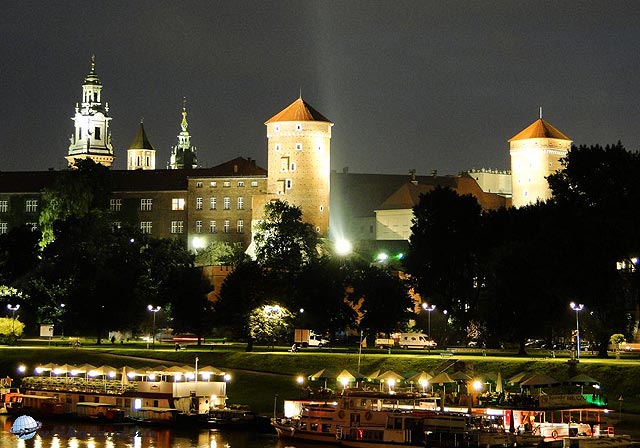 Végezetül rövid pillantást vetettünk a monumentális méretű Szent Katalin és Szent Margit templomra és a Visztula partján sétálva távolról megcsodáltuk az esti fényekben tündöklő Wawelt.
