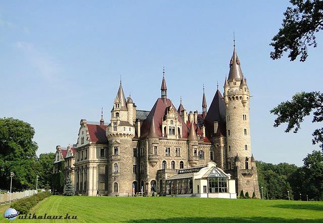 Elsőként a Mosznában lévő mesebeli várat és annak parkját kerestük fel. A kastélyt a XVII. században kezdték el építeni, 365 szobája és 99 tornya van, az Erzsébet-kori angol várakra emlékeztető, csodálatos parkkal körülvett épület. Jelenleg idegszanatórium működik benne, ezért belülről nem látogatható, ám a környékére való belépésért is fizetni kell (5 PLN). Mivel azonban a vár kívülről is bámulatos, ezért mindenképpen megérte meglátogatni, egy kicsit ismét a századfordulón éreztem magam.