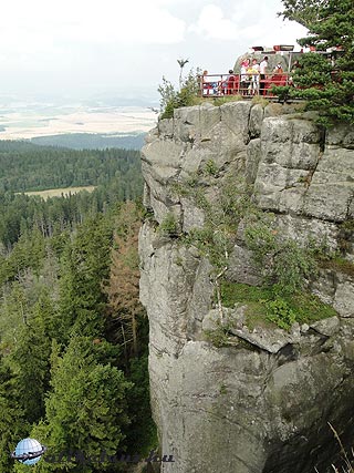 A hegycsúcson fenséges kilátás tárult elénk, a hatalmas szikla tetején különböző vendéglátó egységek kínálnak felfrissülést. Itt található a sziklalabirintus bejárata is (a belépődíj 5 PLN/fő), a körtúra kb. egy órás és egyáltalán nem megerőltető, a látvány pedig egyszerűen lenyűgöző. Hasonlóakat láttunk a csehországi Adrspach Nemzeti Parkban, ez azonban talán még annál is szebb.