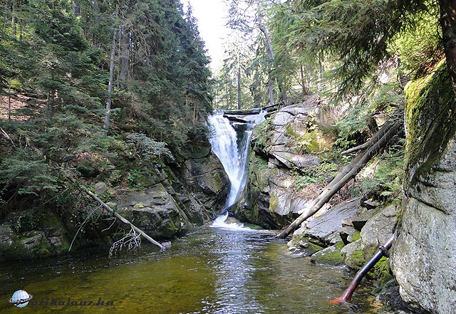 Kirándulásunk utolsó érdemi napjának reggelén Szklarska Poreba felé indultunk, mely a tavaly Csehországban már meglátogatott Óriás-hegység (Karkonosze) egyik kapuja. Célunk az itt található vízesés felkeresése volt, melyhez a jól kitáblázott parkolóból egy kellemes erdei ösvényen vezet az út (a túraútvonalon sajnos már nem ennyire jó a tájékoztatás, a menetidőt 20 percnek jelölik, de számoljunk egy negyedórával többet). A vízesés felfűzhető egy körtúrára is, ehhez azonban érdemes térképet vásárolni. A település fölött az országhatáron magasodik a hegység legmagasabb pontja a Snezka (1602 m), mely azonban felvonóval csak Csehország felől érhető el.