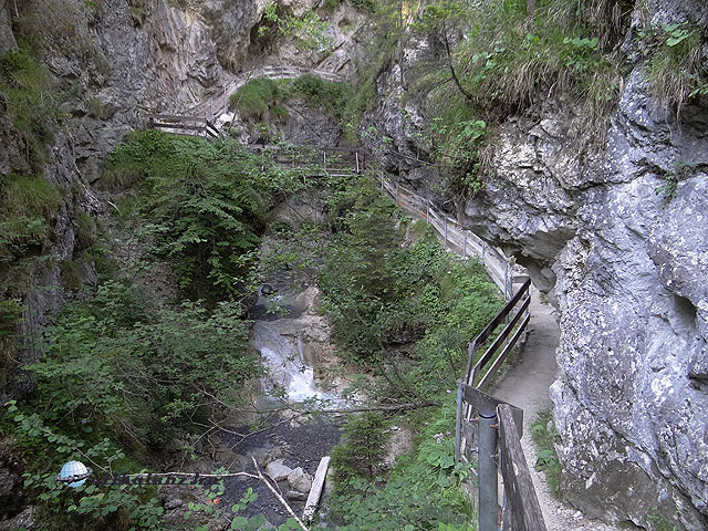 Következő napunk reggelén elváltak útjaink, míg szüleim Söldenben sétálgattak, addig a férjem és én a kb. 50 km-re lévő Imstbe utaztunk, ahol a Johannesplatz közeléből induló Rosengartenschluchtot jártuk végig. A Rózsakert kanyon 1.5 km hosszú, 250 méteres szintkülönbségű szurdok, melynek végén az ún. blaue Grotte, azaz a Kék barlang található. Korábbi útjaink során több kisebb kanyonhoz is volt már szerencsénk, azokkal összehasonlítva ez kevésbé volt izgalmas; a Kék barlang pedig inkább csak barlangocskának nevezhető, ráadásul mesterségesen alakították ki. Mindezektől függetlenül kellemesen éreztük magunkat; a túra az ülőmunkától elsatnyult izmaimnak jó kis bemelegítés volt.