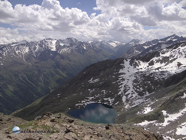 Persze a csúcs nem csak bosszúságot, hanem rengeteg örömet is okozott, hiszen az építkezés zajától eltávolodva az Alpok hófoltos hegyláncai húzódtak méltóságteljes csendben a lábunk előtt. Csodálatos látvány volt, az ember odalentről nem is gondolná, hogy a néhány csúcs mögött micsoda gyönyörűségek vannak még. A hegyek között meghúzódó pici, szív alakú tengerszem, a Gaislach-tó (Gaislacher See), pedig felteszi az i-re a pontot; talán a fotók vissza tudják adni a csodálatos látvány néhány részletét.