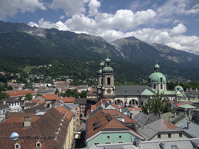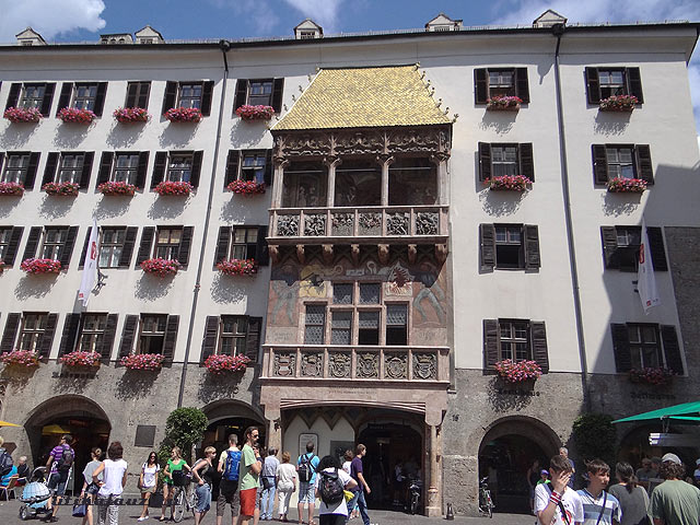 A szerdai teljes napunkat Tirol fővárosának, Innsbrucknak szenteltük. Érdekes, hogy a várost mindenki ismeri, azonban magyar nyelvű útikönyvet nem találtam róla, és az internet sem bővelkedett találatokban, ennek ellenére látnivalókban gazdag kirándulásban volt részünk. Elsőként a császári palotába (Hofburg) mentünk, ahol a császári lakosztályokat néztük meg (8 EUR/fő). Audio-készülék csak a szokásos nyelveken érhető el (magyarul nem), így ennek segítsége nélkül csodáltuk meg a gazdagon díszített lakosztályokat, melyekben számos festmény is helyet kapott az uralkodó család tagjairól, de főképpen Mária Teréziáról. A séta csúcspontja a bálterem volt, melynek pompája lenyűgöző. (Képeket sajnos nem lehetett készíteni.)