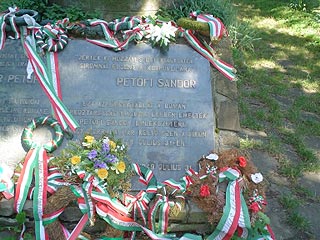 Látható a segesvári csata modellje is egy üveglap alatt, de vetitett képes előadást is bemutatott a kísérő. A kertben egy Petőfi és egy Bem szobor áll. A fő helyen egy turulos emlékmű – magyar és román nyelvű emléktáblával – áll. Ezt az emlékművet is megkoszorúztuk, társunk szavalatával kísérve.