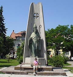 A templomlátogatás után megnéztük az emlékboltot, a templom melletti emlékműveket, majd indultunk tovább. Kissé körülményesen jutottunk ki a városrészből, útfelújítás miatt kerülő utakat kellett választani, ami nem mindig volt szerencsés.