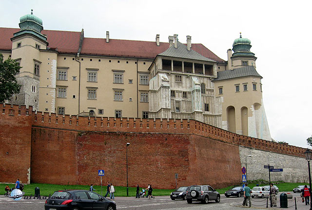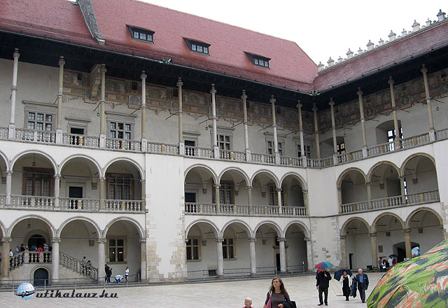 13 órakor volt a találkozás a busszal, majd indultunk a Wawelbe, az egykori királyi várba. Először körbenéztük a vár külső részét (zászlókkal díszített feljárón, egy lovas szobor alatt lehet bejutni a várba). Bent a várudvar egy részén kerthelyiség szolgálja a turistákat. 14,30-kor tudtunk bemenni csoportos belépővel a katedrálisba. Fotózni tilos bent. Látványos az oltár, a bizánci kápolna, a szecessziós Szófia kápolna. Lementünk a királyok kápolnájába is. Itt vannak a lengyel királyok és államférfiak sírjai, síremlékei. A kifüggesztett  alaprajz  mutatja az egyes sírok „tulajdonosait”. Itt található lent a XI-XII.szd-i román stílusú templom (Szt.Lénárd kápolna) is, ahol Karol Wojtila, a későbbi pápa első miséjét tartotta 1946.november 2-án. A templom bejárata közelében áll mások mellett Szt. Hedvig síremléke fekvő alabástrom szoborral.