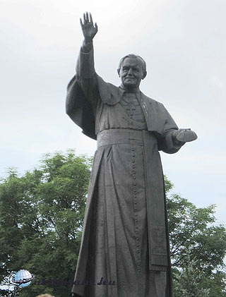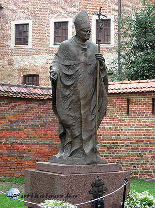 Megnéztük a díszes várudvart, és az előtte álló II.János Pál pápa szobrot is.