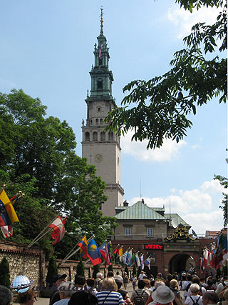 Reggeli után 8,15-kor indultunk, irány Czestochowa, „a harmadik lengyel főváros”, a lelki, ahogy a lengyelek mondják. A több mint 150 km-es távolságot jó 3 óra alatt tettük meg, egy-két helyen kerestük a jó irányt… Parkolás és gyaloglás után fél 12-kor érkeztünk fel a katedrálishoz, zászlóerdővel (köztük magyar is) a felvezető úton.
