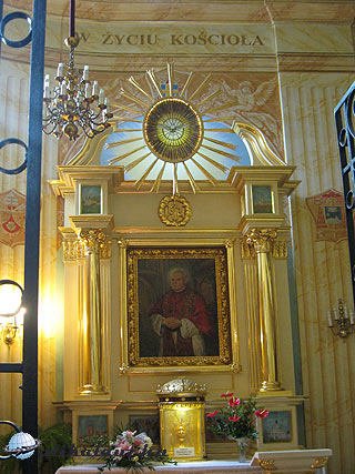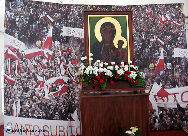 Bementünk utána egy vászontetős nagy  területű kápolnába (Wieczernik), a szentélyrészen két hatalmas festmény a Madonnaképpel, illetve Krisztussal, tömeg kíséretében. Itt tudatosult az atyánál, hogy egy Szegedről ismert nővér elintézte nekünk, hogy fél 2-kor magyar misére mehetünk be a kegykép elé a velünk utazó Zsolt atyával.