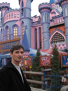 Első város Uzghoorod. Rögtön egy nagy plázánál megálltunk gyanítván, hogy itt lesz bank, vagy komolyabb pénzváltó. A felső szinten találtunk bankot és tudtunk pénzt váltani. 100 dollárért kaptunk 502 hrivnyát. Bementünk az élelmiszer részlegre és megdöbbentünk az árakon, milyen olcsó minden viszonylag. Már attól odáig voltam, hogy nagyon finom csokik voltak 60 forintnyi összegért. Mielőtt elindultunk volna, megnéztük azt a színes lila-rózsaszín várat, amit az útról láttunk, egy hatalmas szórakoztató központ épült.