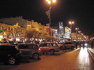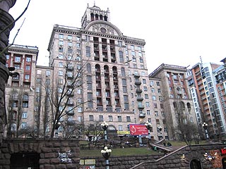 Délután öt körül érkeztünk Kievbe. A befelé tartó úton megláttam egy hatalmas hipermarketet, és sikerült is oda beparkolni. Az áruház mögött megláttunk egy hotelt, bementünk megkérdezni mennyibe kerül, mert nagyon hideg volt, és nem ártott volna meleg helyen aludni, na meg persze fürdeni. Itt drága lett volna, és szoba sem volt, egy ágyas 350 h körül kétágyas 550 h körül. Nagyon jól beszélt a hölgy angolul és nagyon segítőkész volt, mondta, hogy nincs ugyan szabad szobájuk, de megmutatta, hol találunk a közelben másik hotelt, ahol biztosan lesz és olcsóbb is. Át is mentünk és megkérdeztük mennyi a szoba, mondták 382 hrivnya. Nem nagyon akaródzott ezt fizetni, mivel a legalacsonyabb költséggel akartam az utat kihozni. Mivel fáradtak voltunk, a kocsiban egy két órás alvás féle pihenőt tartottunk, utána beautóztunk a belvárosba, hogy legalább lássuk kb. mekkora és mire számíthatunk és hátha találunk még máshol is hostelt vagy valami olcsóbb megoldást.