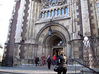 Február 28. csütörtök. Reggel fél 7 körül értünk Lvivbe (Lvov). Megálltunk a városközpontban, és sétára indultunk, közben kétségbeesve pislogtunk egymásra, hogy fogjuk ezt a hideget bírni. Útközben megláttunk egy nagyon szép templomot, rögtön be is mentünk és meglepve tapasztaltuk, hogy a hatalmas templomban meleg volt. Folyamatosan mise volt, nagyon szép énekekkel. A munkába, iskolába igyekvő emberek, pedig folyamatosan tértek be és mondtak el egy imát, fiatalok, idősek, nők, férfiak, gyerekek egyaránt. Nagyon megható volt ezt látni, mennyire vallásosak itt az emberek. Felnőtt férfiak bejöttek a templomba, megcsókolták a kereszten Jézus lábát, mondtak egy imát és mentek tovább.