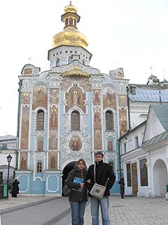 Vettünk egy Kiev térképet, és elindultunk a metró felé, a kinyomtatott papíromon volt egy kép a Lavra kolostorról és mutattam a metró felügyelő hölgynek, hogy oda szeretnénk menni (vü hocsú vígyis, ggye?) , hol szálljunk le a metróról. Mondta az állomás nevét. Vettünk metró érmét, fél hrivnya volt, egy darab 50 kopejka vagyis 19 forint. Kis kék műanyag korong, amit be kellett dobni az átjárónál. A metrójuk tiszta és kulturált volt. Nagyon sokat mentünk metróval kb 20 percet is talán, mire megérkeztünk. Közben tapasztalhattuk, az ukránok mennyire udvariasak egymással, hogy a fiatal fiú, még egy fiatal lánynak is átadja a helyét a metrón, az idősekről nem is beszélve, ha egy idős ember szállt fel, azonnal felpattant valaki, hogy átadja a helyét. Gyerekkoromból emlékszem valamikor nálunk is így volt.