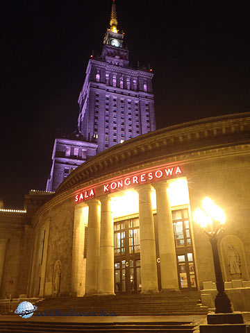 Varsó A Kultúrpalota esti fényekben
