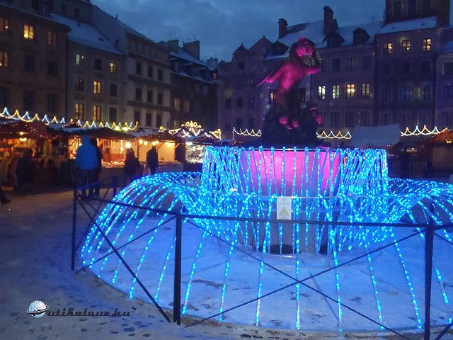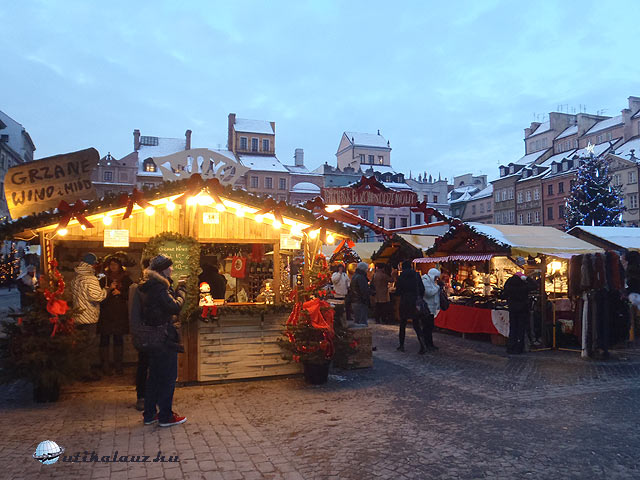 Az Óváros téren található a Királyi Vár, amelynek udvarába ingyenes a belépés 10-15 óra között. Innen könnyen elérhető a Szent János templom és a Piactér. Ide állították fel az árusok a standjaikat, ahol 10PLN/1,5 dl áron vásárolhatunk forraltbort. A téren van egy másik Tourist Office és nem messze egy nyilvános mellékhelyiség is 2 PLN áron. A tér jelképének számító sellő köré egy szökőkutat imitáló fényjátékot állítottak fel, mellé pedig egy méretes karácsonyfát. A teret szegélyező házakon fényinstalláció látható.