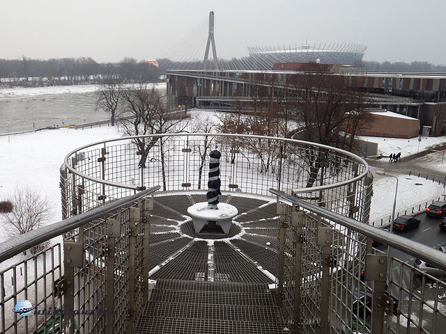 Ebéd után a Varsói Egyetem épületei között végighaladva elsétáltunk az Egyetemi Könyvtárhoz. Ennek különlegessége a tetején kialakított kertkomplexum, ahonnan gyönyörű a körpanoráma az óvárosra és a Visztulára. Az épületben látványos üvegezett galéria található, a külső falkra pedig borostyán fut fel. Az üvegezett átriumok közötti teraszokat vas hidakon érhetjük el. A könyvtár mellett található a Kopernikusz Tudományos Központ, ami amolyan helyi Csodák Palotája. Ez közvetlenül a Szajna parton található, ahonnan közelről megfigyelhetjük az új Nemzeti Stadiont is. A Visztula partja hasonló a Dunáéhoz, azaz szinte teljesen kihasználatlan.  Rakpart fut végig az oldalán, ahol autók közlekednek. Innen visszautaztunk a belvárosba, és tettünk egy utolsó sétát a Szász kertben felállított szobrok között. A repülőtérre való érkezésünkkor erősen elkezdett havazni, így a gép egy órát késett.