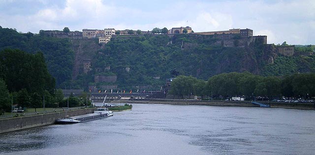 A Német sarokkal szemben, a Rajna jobb partján levő domb tetején látható Ehrenbreitstein vára. A mintegy ezeréves, zaklatott történelmű várban ma elsősorban helytörténeti jellegű kiállítások látogathatók, de gyalogosan vagy ülőliftet igénybe véve, a hegytetőről szép kilátás nyílik a városra. Többek között az u.n. Régi Várra (Alte Burg), ahol jelenleg a városi levéltár van, a 800 éves Szent Florin templomra (Florinskirche), vagy a hasonlóan régi Boldogasszony templomra (Liebfrauenkirche).