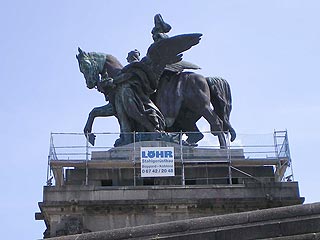 A Mosel-vidék legnagyobb városa a több, mint 100 ezer lakosú, csaknem 2000 éves Koblenz. A rómaiak által alapított város számos nevezetessége közül talán a legegyedülállóbb a korábban már említett Deutsches Eck, magyarul Német Sarok. Ez egy földnyelv, amit a Rajna és a Rajnába balról beleömlő Mosel alakított ki . A földnyelv két oldalán a német tartományok zászlai láthatók. A földnyelv tövében az un. Német egység emlékműve, melyet először 1897-ben állítottak fel. Az emlékmű fő alakja I. Vilmos császár hatalmas lovasszobra, melyet egy robosztus építmény tetején helyeztek el. A szobor körül - az emlékmű részeként - a német tartományok kőből kifaragott címerei láthatók. A szobor a háború végén megrongálódott, majd el is távolították. Jelenlegi helyén 1993 óta látható. Ottjártunkkor sajnos éppen valami építészeti munkát végeztek az emlékművön, ezért a szoborról készült fotók esztétikai értékét leronja a középen látható felirat, a munkát végző cég neve.