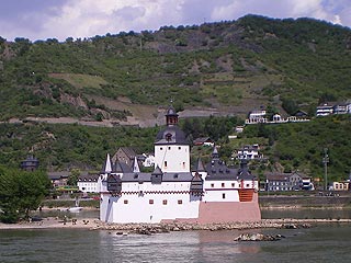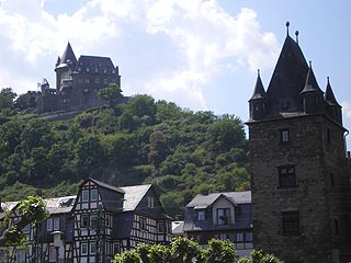 Az időhiány és a várak nagy száma nem tette leheté, hogy minden egyes várat belülről is megnézzünk, ezért a külső szemlélődés mellett döntöttünk. Több kisebb vár után érünk egy Bacharach nevű kisvárosba, aminek óvárosát érdemes megnézni. Csak itt hat különböző kastélyt vagy várat számoltam össze. A kikötő közelében egy nagy hordóra festett szöveg jelzi mindenkinek (aki nem tudná), hogy Bacharach Weinstadt, azaz a borok városa. Az egyik legérdekesebb fekvésű vár a Burg Pfalzgrafenstein következik ezután. Ez a vár a folyó egy kis szigetét gyakorlatilag teljes egészében elfoglalja. Ideális helynek igérkezett arra, hogy a sziget birtokosa a folyón haladó hajóktól vámot szedjen. Ezt a helybeliek évszázadokon keresztül ki is használták.