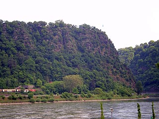 Pontosabban azt, honnan lehet a legjobban látni a Loreley-sziklát (az írásmód még a németeknél sem egységes, mert egyes helyeken Loreleinek is szokták írni), ami a túloldalon van. Ez a rosszhírű, de nevezetes szikla arról kapta nevét, hogy a monda szerint itt lakott egy Loreley nevű vizitündér, aki énekével magához csalogatta a hajósokat, majd azok a sziklához ütődtek hajójukkal és elsüllyedtek.
