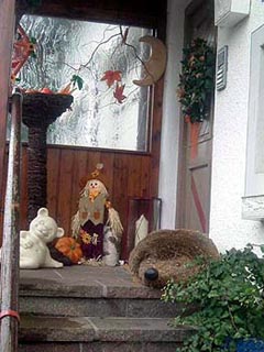 A tető egyik végében egy ajtó felett a "Herzlich Willkommen
