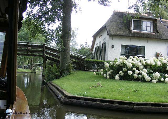 A táj nagyon tetszett, tényleg mindenfelé csatornák. Kisebb csatornák például az út két oldalán, a házak előtt. Mint nálunk falun…, csak itt az a normális, hogy tele van vízzel az árok. Érdekes, hogy kerítést és függönyt nem sok helyen látni. Állítólag ez a függönynélküliség azért alakult ki, hogy a tengerészfeleségek férjük távollétében mindig szem előtt legyenek, és ne érezzék magukat túl szabadon …