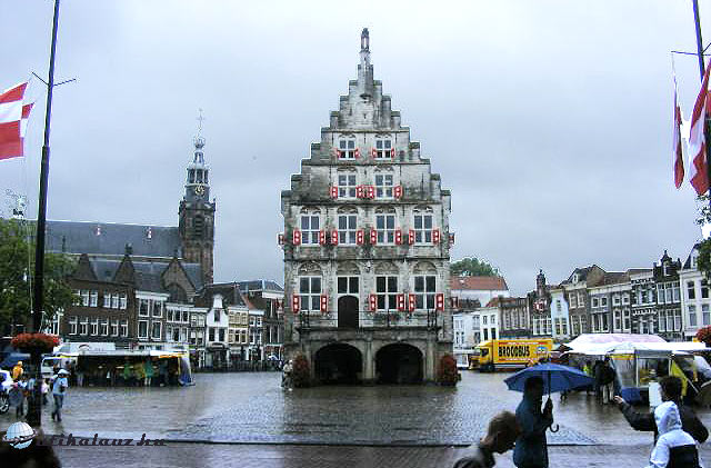 Ugyan reggel még mindig szakadatlanul szakadt az eső, úgy gondoltuk, van meleg ruhánk, bőrcipőnk és esőkabátunk, meg amúgy sem gyalog kell menni Goudáig (ahol ki tudja, lehet, hogy a nap is süt)…