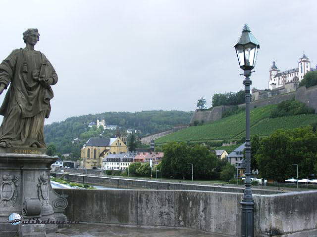 A Régi Majna-híd nagyon mutatós, barokk szobraival kicsit a prágai Károly-hídra emlékeztet. Ezen keresztül lehet feljutni az óvárosból a várhoz, ami alatt (és az egész város körül) óriási szőlőültetvények vannak (látszik, hogy a rizling őshazájában vagyunk), tök jó =)