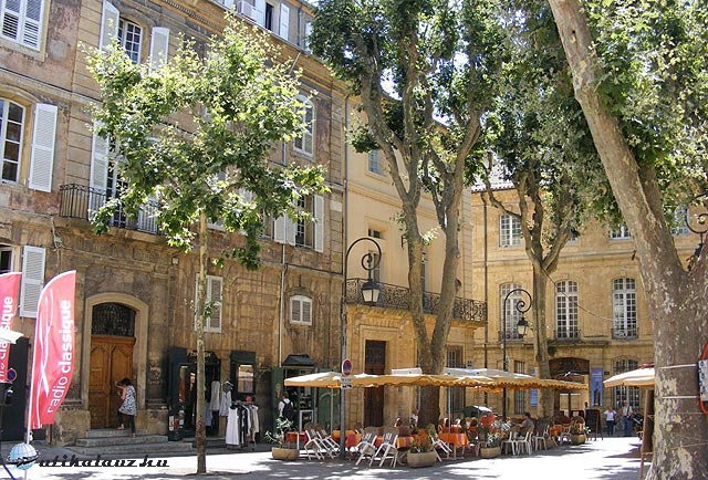 A híres Mirabeau sétányon teljes természetességgel közlekednek autók, az út közepén száz méterenként álló szökőkutak látszólag teljesen hétköznapi részét képezik a közlekedésnek.