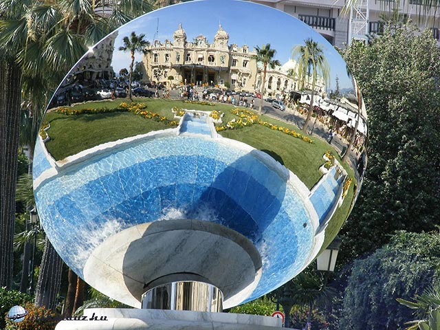 Már messziről is gyönyörű, előtte park, szökőkút. 10 euró, hogy bemehess játszani a nagyterembe, de nincs dresscode, rövidgatyában meg pólóban is be lehet menni, viszont le kell adni a passportot. Lehet, hogy oda 18 év a korhatár, de az épületbe magába és a félkarú rablós terembe bemenetelkor nem kérnek semmilyen okmányt. Dobtam volna egy eurót az egyik gépbe, már csak az élmény kedvéért is, de öteurós volt a legkisebb címlet, amit elfogadott, annyit meg sajnáltam volna. Az épület belülről nagyon szép, hivatalosan nem lehet fényképezni, nem hivatalosan lehet, ha ügyes vagy. A közhiedelemmel ellentétben nem az egész város van tele méregdrága sportkocsikkal, csak a kaszinó parkolója, azzal is szeret pózolni a sok turista, bár azt a riasztó miatt nem tudják ölelgetni, a cseppkövekkel ellentétben.