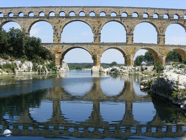 Előtte van a hatalmas parkoló, ahol 15 euró a parkolójegy egész napra és egyben a kocsiban ülő összes személy belépője is. Aki akar, túrázhat vagy fürödhet a híd alatt a Gard-folyóban. Hatalmas élmény és látvány, kár kihagyni.