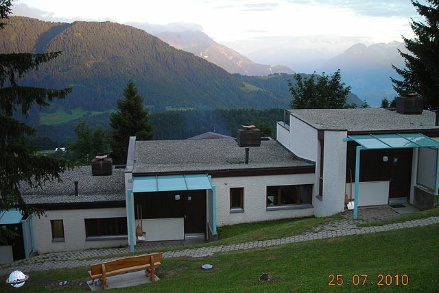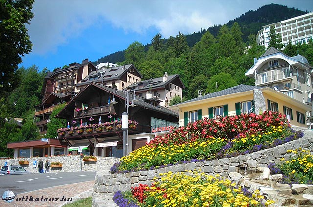 Kis séta után folytattuk utunkat a szálláshelyre, Leysinbe, amely innét még jó 3/4 órányira 1260 méter magasan a hegyekben fekszik. A valamikor tüdőbetegek gyógykezelését szolgáló falu mára ismert síközponttá vált, ahonnét felvonó visz fel a Tour de Mayen es Berneuse csúcsokra, ahol körbe forgó étteremből egyedülálló kilátás nyílik az Alpokra.