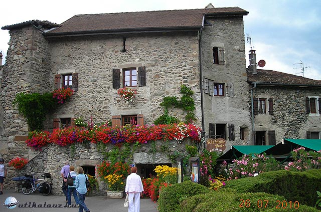 Hétfőn a tó francia oldalán levő Yvoireba mentünk, amit virágvárosnak is neveznek. Gyönyörű korabeli városrésszel, kőből épült hangulatos épületekkel, rengeteg zölddel és virággal találkoztunk. Fejünk felett percenként húztak el a repülőgépek, mivel a genfi reptér csupán pár kilométerre található.