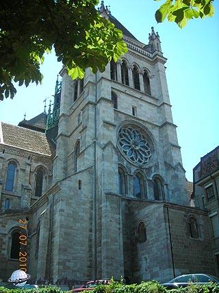 Kedden Genf felé vettük az irányt. Az odaút simán ment, de már akkor feltűnt, hogy a szemközti sávban gyanúsan sok helyen áll a sor. A városba érve már messziről látni lehet a Genf szimbólumának számító Jet d’Eau szökőkutat, aminek érdekessége, hogy másodpercenként 500 liter víz 200 km/h sebességgel lövell ki 140 méter magasba. A szökőkút közelében egy mélygarázsban parkoltunk le, majd elindultunk felfedezni a várost. Az óváros küszöbén található a Jardin Anglaisnek nevezett angolkert, melynek bejáratánál virágóra várja a látogatókat. Az óvárosban megnéztük a St. Pierre katedrálist, a Maison Tavelt, Genf legöregebb épületét, sétáltunk az ódon hangulatú óvárosban. Nekem őszintén szólva sem Genf, sem maga az óváros nem tetszett, túl rideg, túl komoly volt és meglepően kevés volt ebben a városrészben a turista.