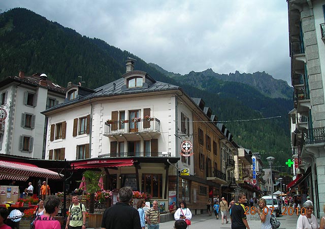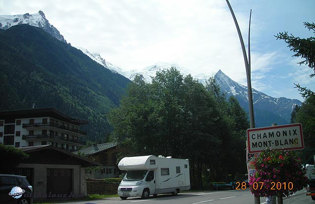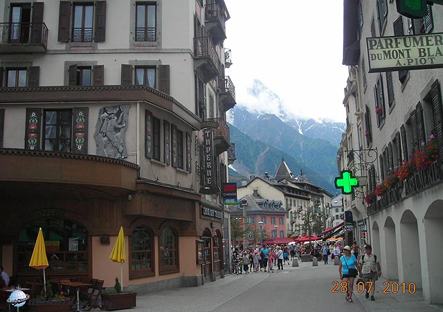 A következő nap ismét Franciaországba, a Mont Blanc lábánál lévő Chamonixbe mentünk. Gyönyörű hágón keresztül vezetett az út, hatalmas élmény volt a már messziről elénk táruló Mont Blanc látványa. A városban rengeteg volt a turista, és bár a nyár kellős közepén jártunk, szinte mindenhol téli felszerelést, sítalpakat árultak. Hangulatos város Chamonix, éttermekkel, utcazenészekkel.