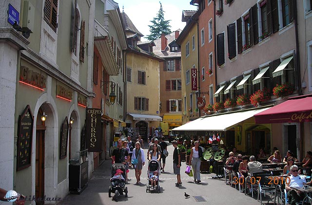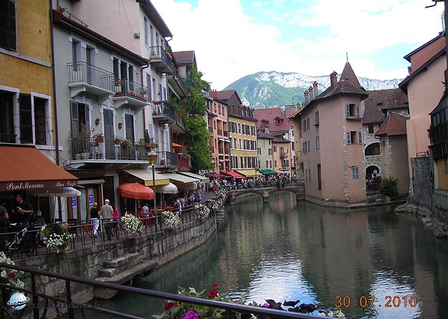 Pénteken, az utolsó napon Franciaországba, Annecybe mentünk. A város az Annecy folyó partján terül el, és francia Velencének is nevezik. Nekem sokkal jobban tetszett, mint az igazi Velence, gyönyörű, hangulatos, vidám, órákat lehet benne bolyongani, szinte magával ragadja az embert. Rengeteg ember volt itt is, de meglepően nem volt zavaró, még inkább hangulatossá tette a várost a kavalkád. Ha előre tudtam volna, hogy Annecy ennyire varázslatos, akkor Genf helyett inkább ide jöttünk volna, mert egy nap kevés volt erre a csodára.