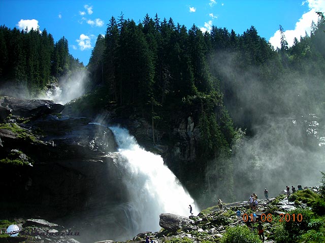 Szombaton Ausztria fele vettük az irányt. A hazafelé úton 3 éjszakára megálltunk Kaltenbachban, Tirolban. Mivel két éve ezen a részen már voltunk, de a szakadó eső elmosta a Krimmler vízesést, így nagyon szerettük volna megnézni. Szerencsére gyönyörű idő lett másnap is, már-már kánikula, így jól esett a vízesés mentén a fák árnyékában sétálni. Az út mentén sok-sok kilátó, pihenőhely van, mert bizony elég fárasztó séta végigmenni a vízesés mentén. A bejáratnál fagyizó, éttermek, ajándékboltok várják a látogatókat. Utólag kiderült, nem lett volna muszáj felfelé is sétálni, mert busz is megy fel a legfelső vízeséshez, így ha ezt a variációt választottuk volna, akkor csak lefelé kellett volna megtennünk az utat.