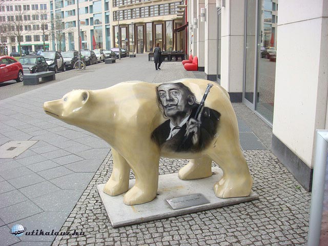 Pár lépésnyire található az Amerikai Nagykövetség, melynek üvegablakán egy szabadságszobornak „álcázott” medvét véltünk felfedezni.( Egyébként gyakorlatilag lépten nyomon vicces medvékbe botlik az ember Berlinben, mi nagyon megszerettük „őket”).