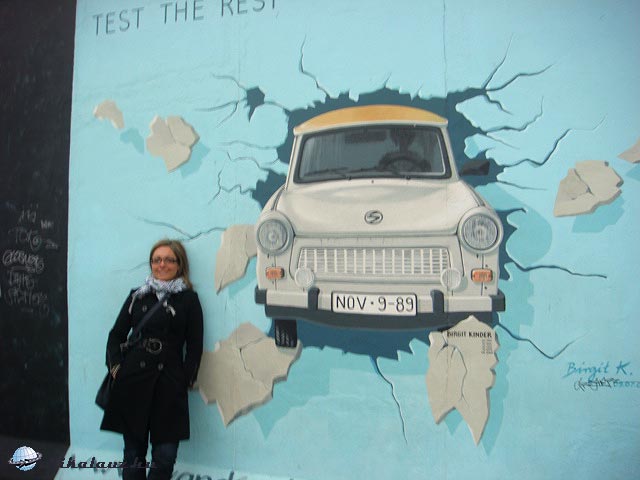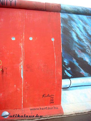 Elsőként az Ostbahnhof és az Oberbaumbrücke között, a Mühlenstrasse mentén taláható East Side Gallery-t, a berlini fal egyetlen, egy darabban megmaradt 1316 m. hosszú darabját néztük meg. Ez a világ legnagyobb szabadtéri galériája 1990 óta. Magyar művészek – többek között Kentaur – munkáit is láthatjuk ha erre járunk.