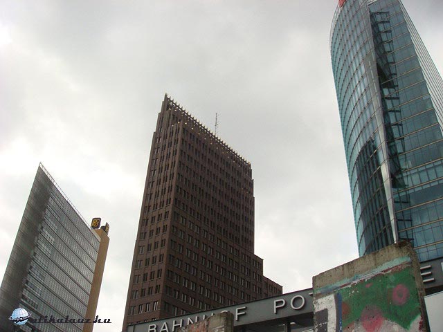 . Első utunk a Potsdamer Platzra vezetett, ami mára az új Berlin igazi jelképe lett. Az 1920-as években ez az egyik legforgalmasabb kereszteződés volt Európában. Azonban a II. világháború és az azt követő romeltakarítás következtében csaknem minden beépítés elpusztult. 1961-től az újraegyesítésig elhagyott felvonulási terület volt, csak időnkét törte meg a csöndet egy-egy őrjárózó tank vagy terepjáró. Mára azonban vissza tért ide az élet. Egymás után nőnek ki a földből a szinte az eget súroló modern üveg és acél épületek. Tulajdonképpen egy új városrész született. Itt található az összesen hét épületből álló Sony Center, a félbevágott henger alakú Bahn Tower, a német vasutak központja, amely 103 méter magas és 26 emeletből áll. A Kolhoff torony, ahová Európa leggyorsabb liftje visz fel 3,5 euróért, ahonnan jó kilátás nyílik az egész városra.