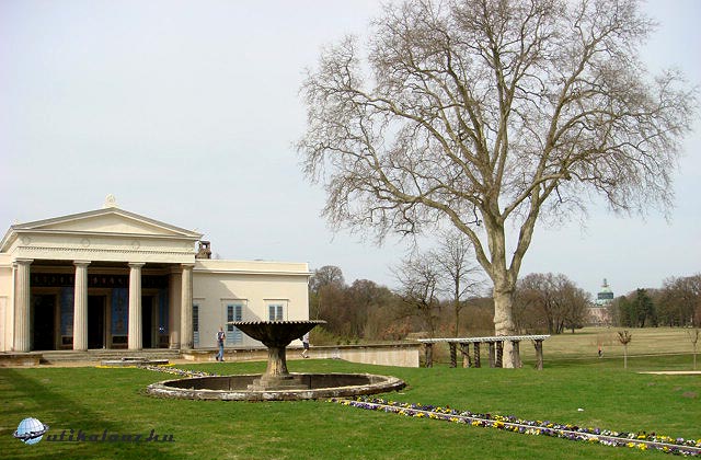 Tőle nem messze található a Római Fürdő, ami egy belső udvar köré komponált teapavilonból, kertészházból és fürdőből álló épületegyüttes. A fürdő központi része a meleg vizes medence, padlóját pompeji mozaikok másolatával borították, a középső jelenet Nagy Sándor csatáját mutatja be i.e. 333-ból.