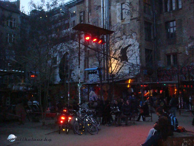 Eredetileg egy 1909-ből származó bevásárló központ volt itt, és annak idején az egész háztömböt elfoglalta. 14 bejárata, 9 belső udvara, valamint 10 lépcsőháza volt. Az egykori pompás áruház a II. világháborúban kiégett. A két Németország egyesülése közötti anarchikus időkben fel akarták robbantani, de még a fal lerombolása előtt elfoglalták a kelet-német rockerek és alternatívok. A rendszerváltás után csatlakoztak a nyugat-berlini, kreuzbergi profi házfoglalók is. 1998-ban megvette az épületet egy befektető csoport, és évekig tartó huzavona után megállapodtak a házfoglalókkal egy szimbolikus, havi 1 (akkor még) márkás bérleti díjban, viszont cserébe el kell viselniük, hogy a házba bárki, bármikor bejöhet és nézheti őket alkotás közben. Működik a házban egy Zapata nevű romkocsma is, kinti és benti résszel is. A benti nem volt túl szimpatikus, viszont a kinti rész nagyon hangulatos. Homokkal felszórt nagy területen több bárpult, lerobbant fa padok és asztalok, hatalmas kocsikerekek kanapéként funkcionálva biztosítják a kényelmes-kötetlen szórakozást. Mikor ott voltunk épp egy Che Guevaranak öltözött fickó és együttese , ropogó tűz mellett adott aznap este fergeteges koncertet.
