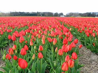 Sok helyen ki van írva az út mellett, hogy a virágföldeket meg lehet nézni, mi is így tettünk, kis utakra letérve sikerült lemenni a virágföldekhez. Kerítés nincs, nem is kell, hiszen minden parcella földet csatorna választ el egymástól és az úttól is, hatásos védekezés a belvíz ellen. A csatornákban összegyűjtött vízből aztán locsolnak, amikor kell, és a sok eső dacára sűrűn kell, mert a homokos föld azonnal kiszárad. Tulipán, jácint, nárcisz mindenféle színben, formában, nyílási állapotban. Egyszerűen fantasztikus, nem lehet betelni vele.