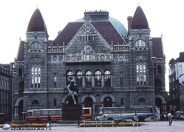 A Svéd Színház felé vettük az irányt, ez volt a találkozási pontunk is, valamint kellemes parkos sétatér vezetett oda az öböltől. Itt volt egy bolt, ahol az Aarikka formatervezett, főleg fatárgyakat árulták (www.aarikka.fi – az eltelt 20 év alatt a termékskálájuk alaposan megváltozott) – nekem legjobban a bárány tetszett fa natúr színben, sajnos erre sem volt keretünk.