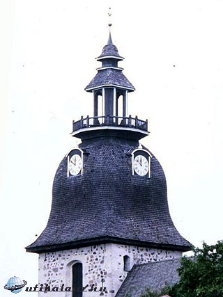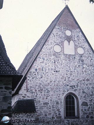 Továbbmenve – légvonalban újabb 30 km-re – K-DK-re Perniöben álltunk meg. Ez a templom úgy száz évvel fiatalabb a sauvoinál, így, bár alaprajza szinte ugyanaz – miért is lenne más –, díszítése kifinomultabb. Mindkét hajózáró fala díszítettebb, különösen az egyik – kereszt és más formák téglából a teljes felső részt beborítják. Mindkét templomnál a hatalmas tető szinte agyonnyomja az embert – de hát errefelé nagy havak szoktak lenni, ami miatt szükség van rá. Itt is különálló harangtorony áll. A berendezés mindkét helyen egyszerű, egy oltár, padok és orgona– evangélikus templomokról van szó.