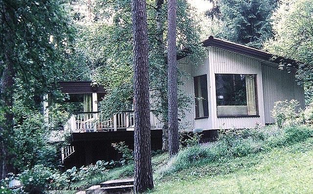 A házban volt telefon is, amit bedugva minden gond nélkül, kiváló hangminőséggel fel tudtuk hívni a feleségem szüleit! (Ezt alig tudtam felfogni, hiszen ekkortájt nálunk pl. egy megyeszékhelyen belül egyszerűbb volt átmenni a pár percre lévő másik hivatalba és megbeszélni valamit, mert órák alatt sem lehetett telefonvonalat kapni – hogy a telefonellátottságról ne is beszéljünk! A hatszázezer lakosú Helsinki telefonkönyve alig volt kisebb, mint a kétmilliós Budapesté, igaz, egy névhez 2-3 telefonszám is tartozott: a városi, a nyári laké és akár egy távolabbi birtoké – így volt házigazdáinknak is három számuk.) Háromféle fűtési mód is volt a házban: a már említett kandalló, légkeverős olajradiátor és elektromos kályha! A ház előtt fából volt egy kiülős rész, rálátással a kis tóra. A főépület alsó szintje kőből készült, de a felső szint már fából. Óriási területűnek maradt meg az emlékezetemben – ami azért túlzás–, de kényelmesen el lehetett férni benne. A konyha legalább 30 m2–es volt, a fal mellett és a falon végig konyhaszekrények, bennük mindenféle gép és edényféle. Két ajtaja volt, az egyik az étkezőbe nyílt, hogy ne kelljen messzire vinni az ételeket. A nagy asztalnál jól lehetett étkezni, beszélgetni – mindig volt rajta váza vagy gyertyatartó. Az ablak rétegei között díszek voltak, amelyek vidámmá tették – még ha nem is feltétlenül az én ízlésem szerint. A földszint másik részét beszélgetős hellyé alakították, többnyire itt kávéztunk. De volt a házban elektromos szauna – ún. téli szauna – és kis kamra is a kőbe vájva. A hálószobákat az emeleten rendezték be.