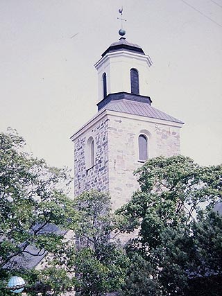 Mivel feltűnt barátunknak, hogy nagyon értékeljük a régi épületeket, ezért a visszautat egy kisebb kanyarral tettük meg, ezzel kedveskedett nekünk. Az első megálló légvonalban Turkutól 30 km-re DK-re Sauvo temploma lett. Kedves kis falusi templom (36 m hosszú, 10 m széles), kőből építve, a XIII. század végén kezdték el építeni. A hajó zárófalának felső része téglából van, vakolat nélküli, így szépen kiadja az anyagában díszítését. Különálló harangtornya van, az alja terméskő, a felső része vakolt tégla – barokk sisakkal. Természetesen az évszázadok alatt jelentősebb változásokon ment át, de leginkább a berendezését tették barokk stílusúvá. A templom körül a temető – ahogy az mindenütt a keresztyén világban szokás volt.